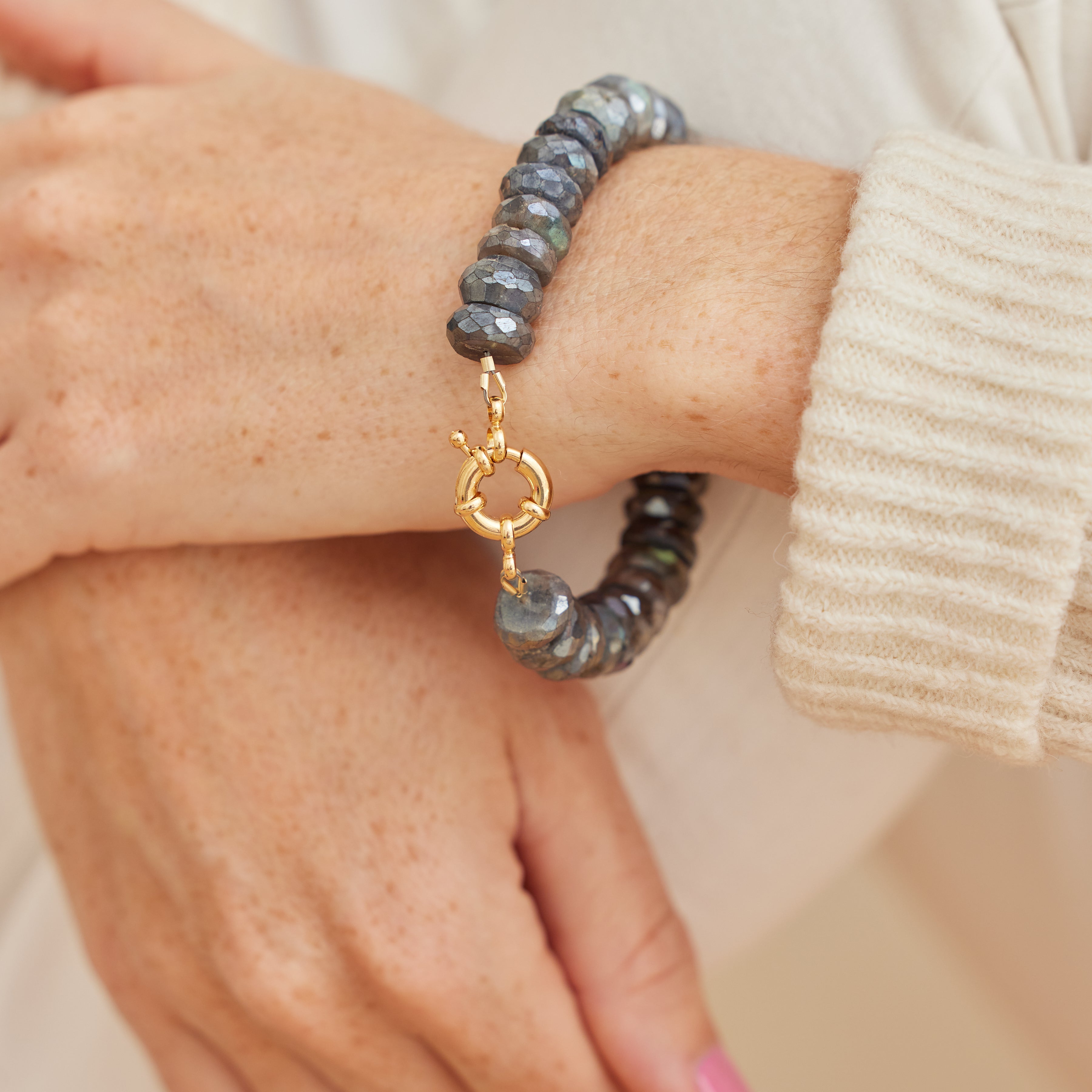 Authentic gemstones and gold plated clasp. Labradorite is coated for extra sparkle.