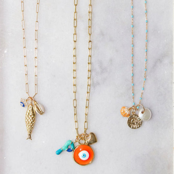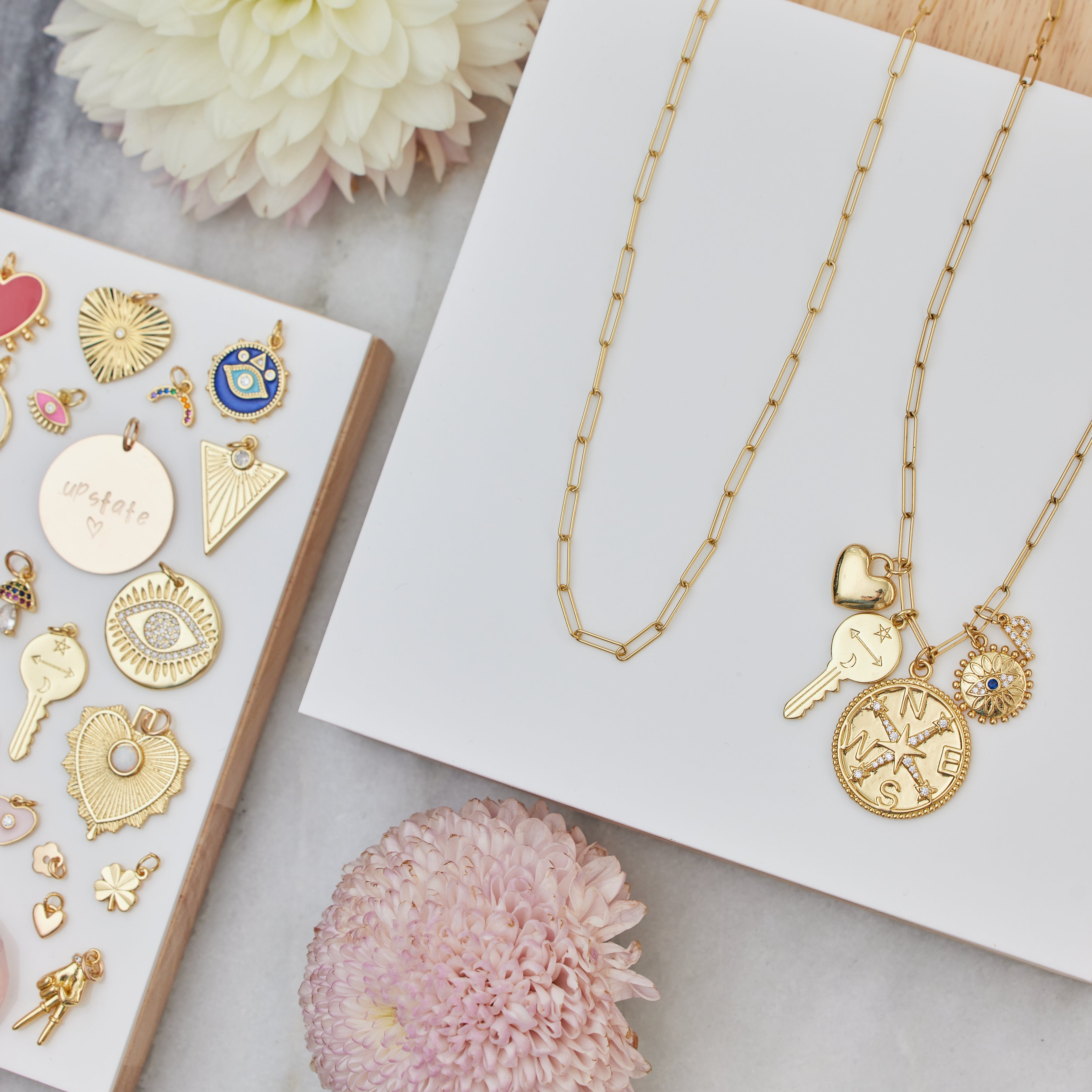 Almost all of our charms slide right onto these chains to create a mix and match collection you can to add over time. We encourage you to collect charms with intention, on your travels or whenever you are inspired.