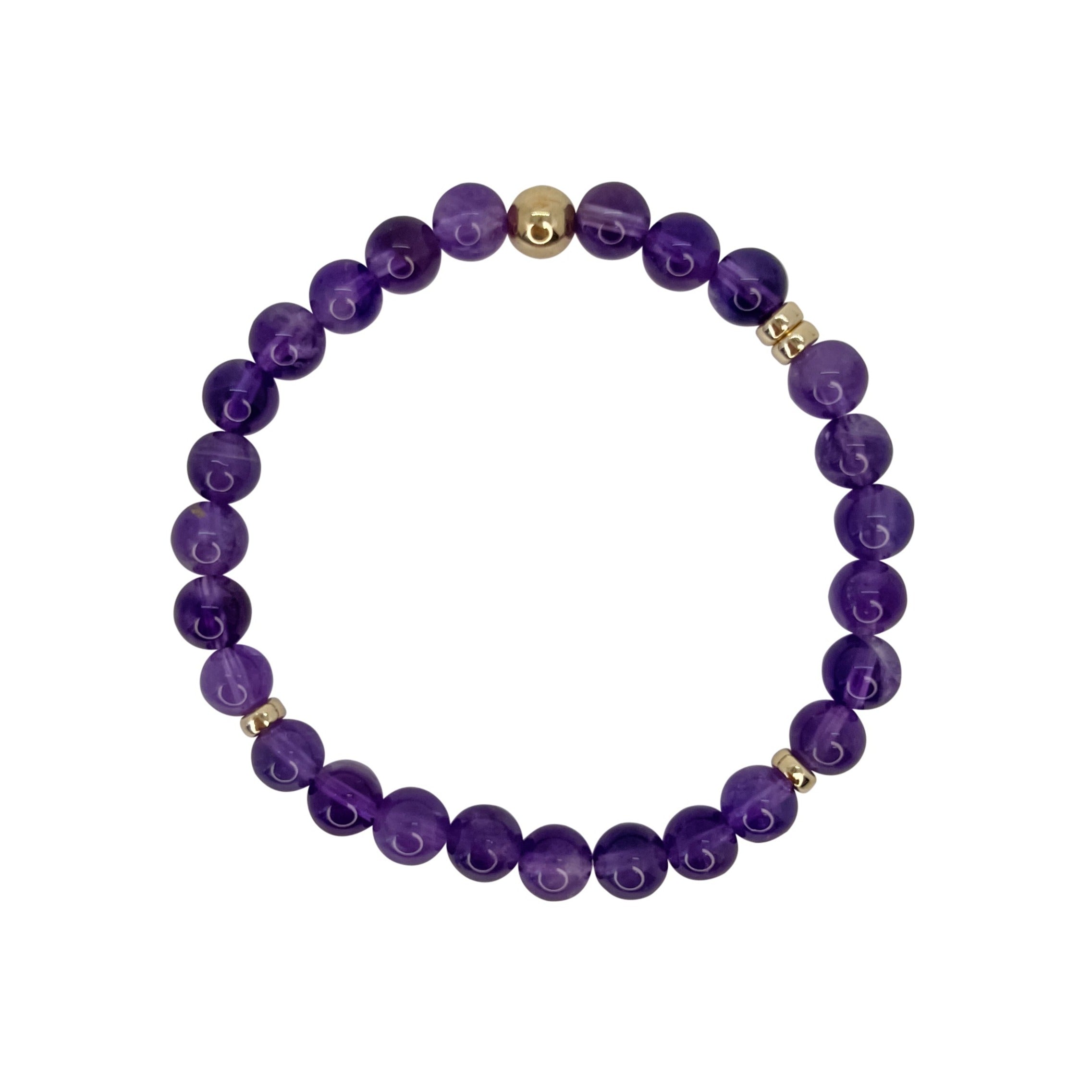 6mm genuine amethyst with 14k gold filled accents. Made with love and strung on stretch.