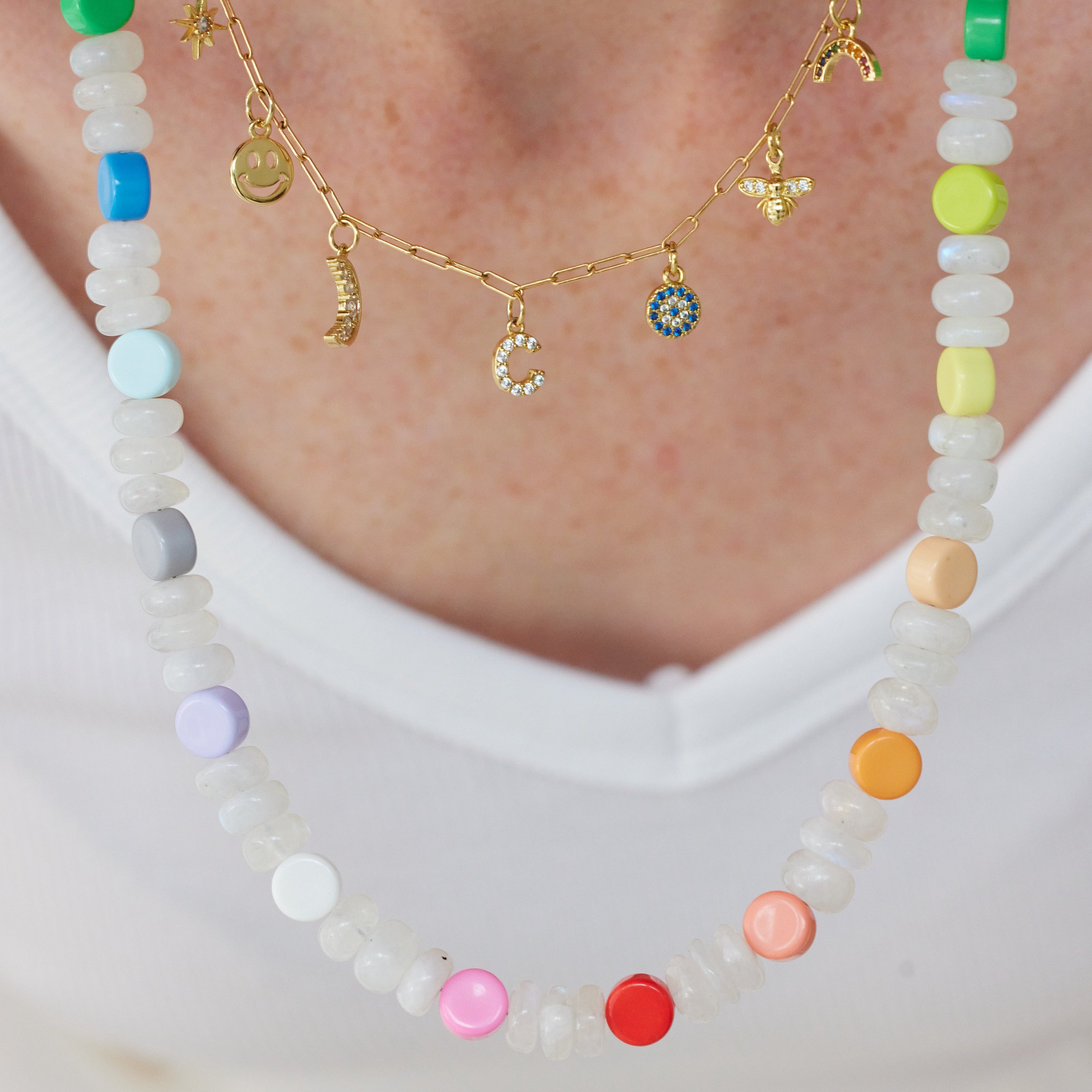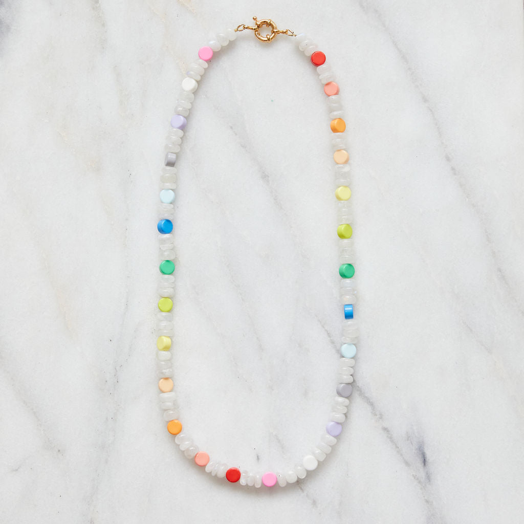 Keep your gems away from harsh chemicals, perfumes or lotions. This may cause tarnishing. Although we recommend wearing your necklace by the water, we suggest keeping it out of the pool or ocean.