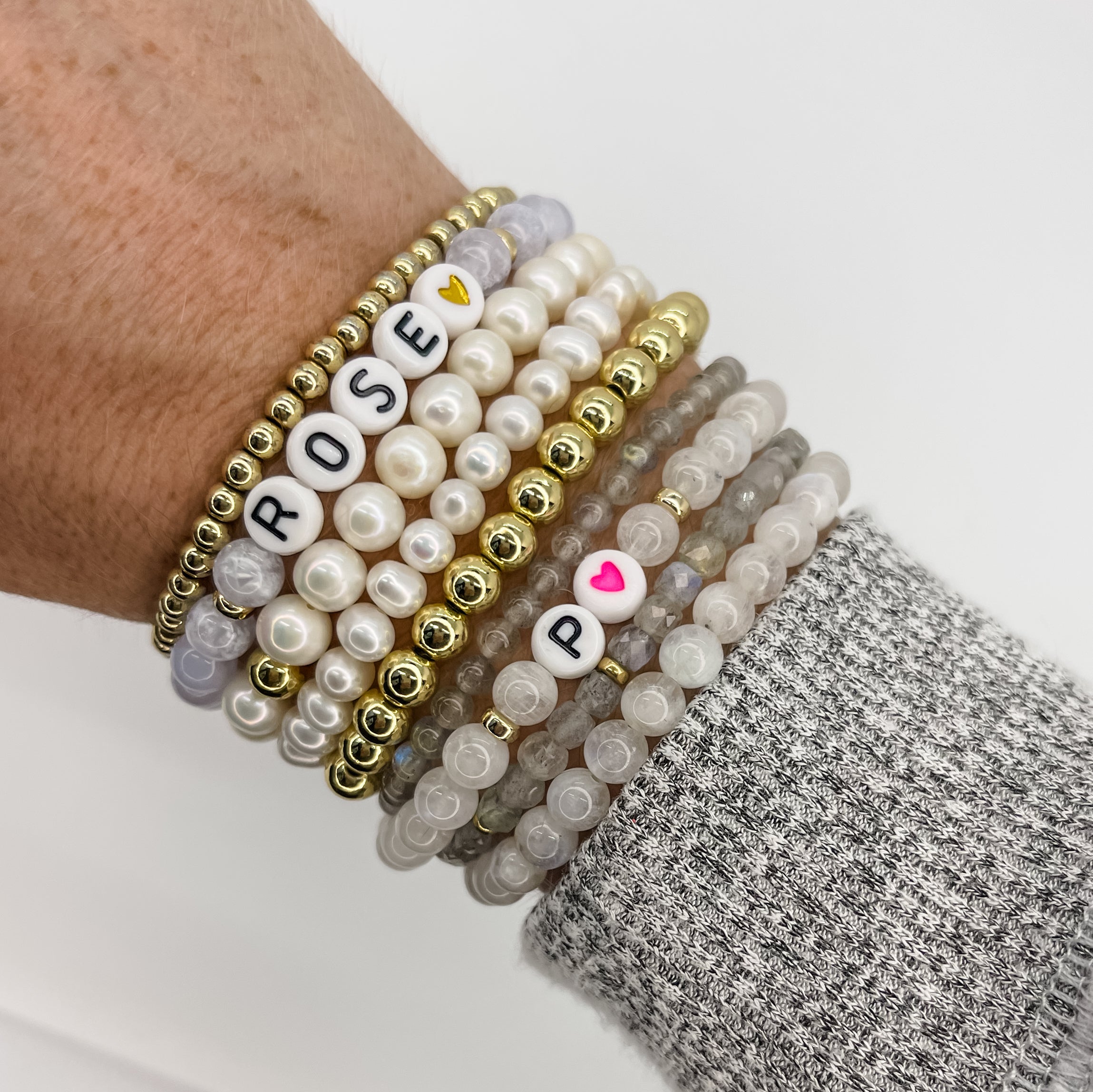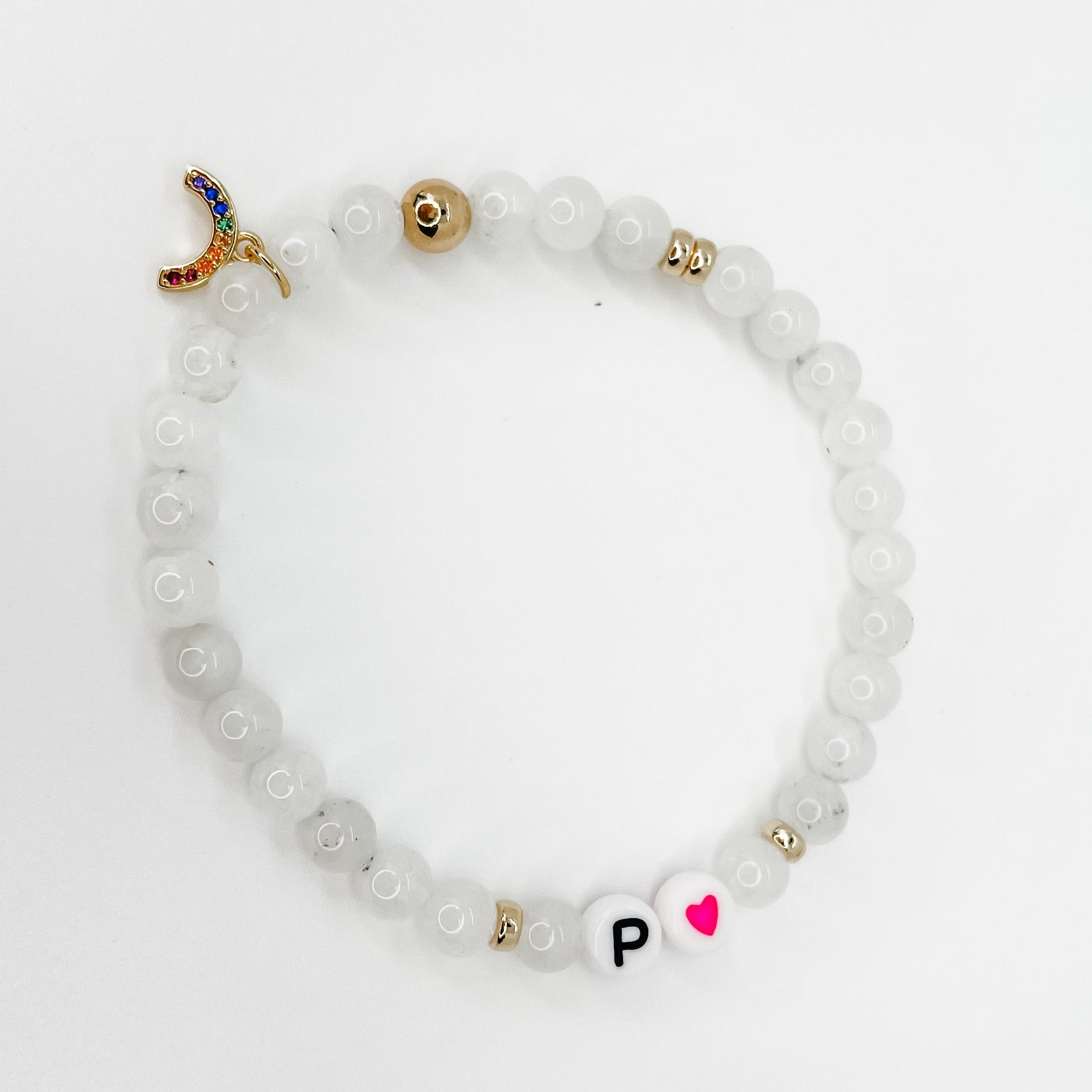 Moonstone: will bring the calm you need when your emotions are high. As the stone of divine feminine energy, you will unleash the goddess within you. Keep close if you are balancing your hormones or going though change. You will be guided out of the dark and into the light. We believe every woman needs this bracelet!