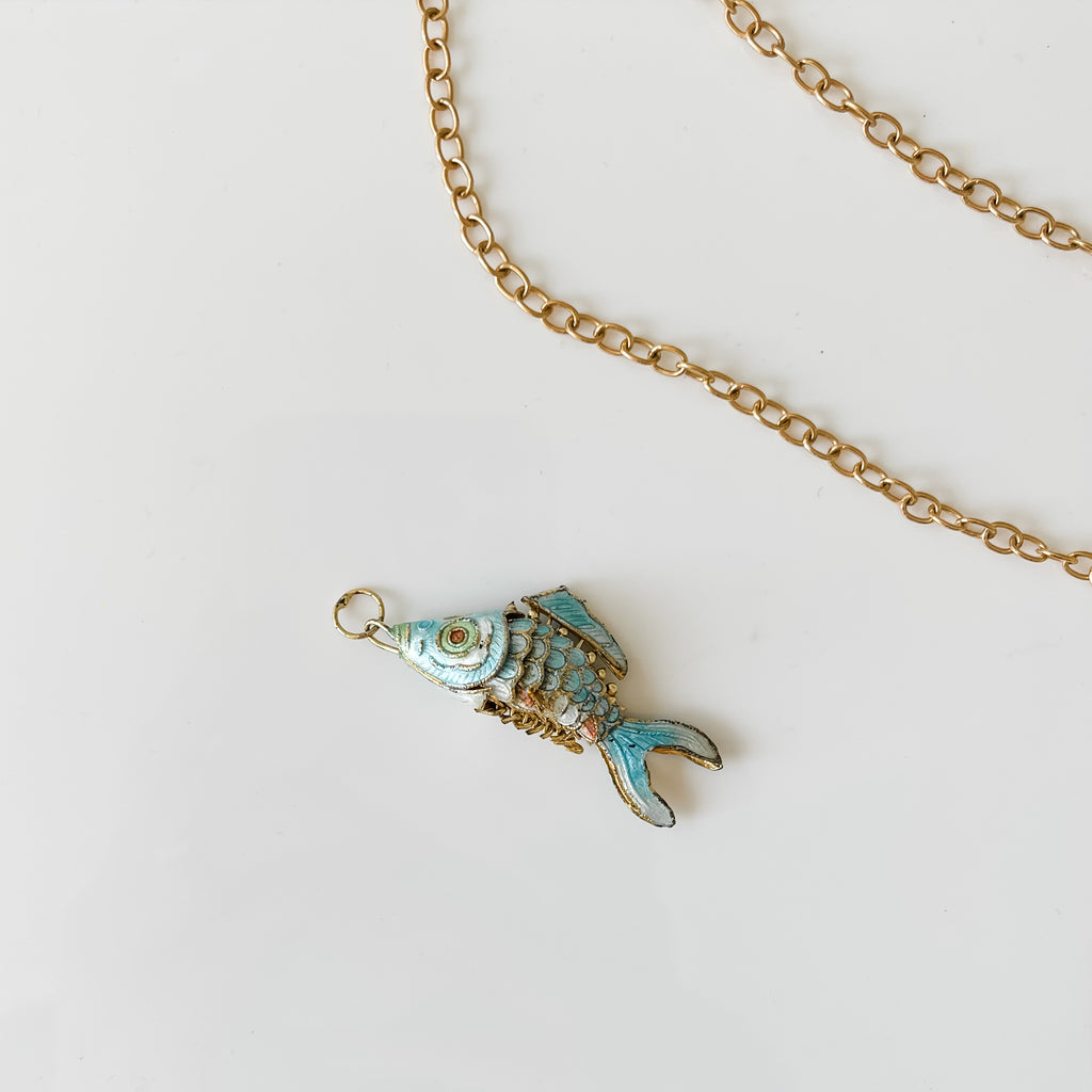 1960s ARTICULATED MINI BLUE WIGGLE FISH