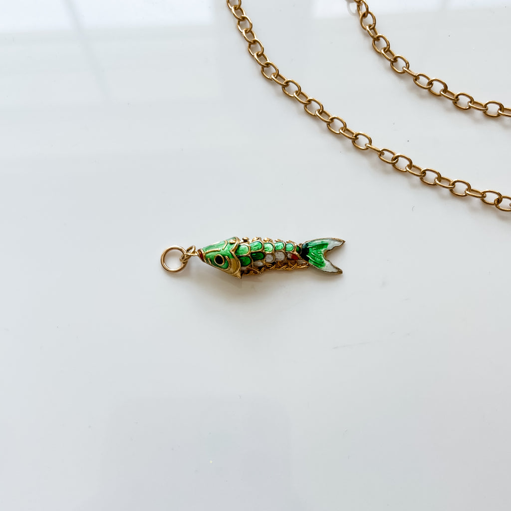 1960s ARTICULATED MINI GREEN WIGGLE FISH